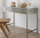Go to the shop"Crafted from small pieces of tiles, this unique table design makes a wonderful addition to any hallway or living room. It serves as both a functional storage solution and a decorative accent to complement your home decor. The wooden console features a beautiful bone inlay pattern, created with meticulous attention to detail using bone and resin. The result is an exquisite piece that adds character and elegance to your space."
